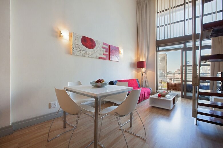 This beautiful apartment is situated within the central hub of the De Waterkant village bordering the CBD, well known for its excellent restaurants and nightlife. This luxurious two bedroom self-catering apartment boasts a large balcony and spectacular views over Table Mountain and the Mother City and is just a stone throw away from the V&A Waterfront.