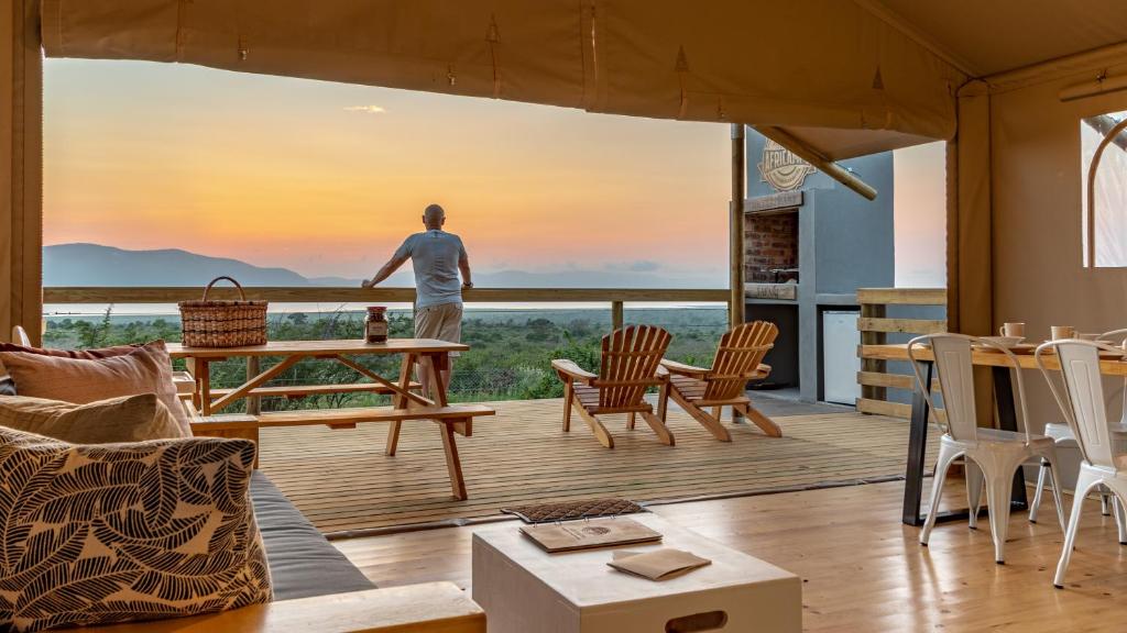 Enjoy an AfriCamps glamping getaway while experiencing all the thrills of an established private game reserve where buffalo, elephant, rhino, leopard, hyena, giraffe, wildebeest, zebra, warthog, 12 different antelope species, and over 350 bird species roam the plains and grace the skies.
