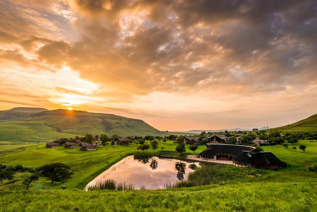 Set in picturesque Bonjaneni, this 4-star hotel complex offers contemporary accommodation with stunning views of the Drakensberg Mountains. Luxury amenities include an outdoor pool and an equestrian centre. Each guest unit at Alpine Heath Resort features a flat-screen TV with satellite channels, a seating area with a sofa and a dining area. The modern kitchens have a microwave, a tea/coffee maker and cutlery. A well-equipped fitness centre is on site for those who like to stay in shape. After a workout, guests can unwind with a rejuvenating massage treatment. There is also a 24-hour front desk, a tennis court and a bicycle rental service provided. Alpine Heath Resort has many dining options for guests including regional dishes cooked in a traditional clay oven. Meals can be enjoyed in the restaurant, on the terrace or in the privacy of guests’ rooms. There are also braai barbecue facilities available.