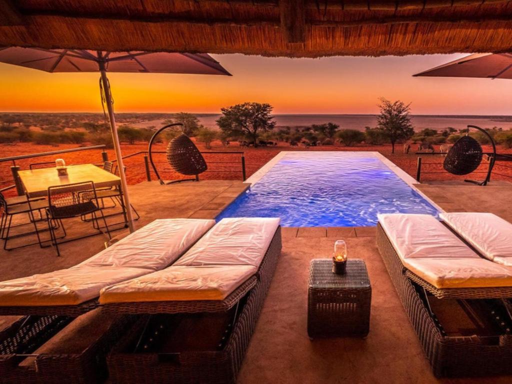 All rooms are elegantly and comfortably furnished and have private bathrooms with hot showers, running water and toilets. Air-conditioning, tea/coffee stations, and a bar-fridge. You will quickly understand the meaning of exclusive natural setting in this area of our lodge. Relax at the Farmhouse for a sundowner cocktail at the spacious terrace overlooking the pan before dinner in our dining room overlooking the Kalahari. SERVICE We are proud of our hospitality and all preparations are made with meticulous care. We offer a wide range of activities and excursions. Enjoy the sunset on one of the large sand dunes or relax at our swimming pool. If there is any other requests, do not hesitate to approach our friendly staff with wishes or concerns. We want your stay to be a happy and an unforgettable experience, leaving you with a desire to visit us again. FACILITIES Shower Lavatory Bathtub in some Coffee and tea maker Hairdryer Air conditioning Free Wifi at main lodge Safe Minibar