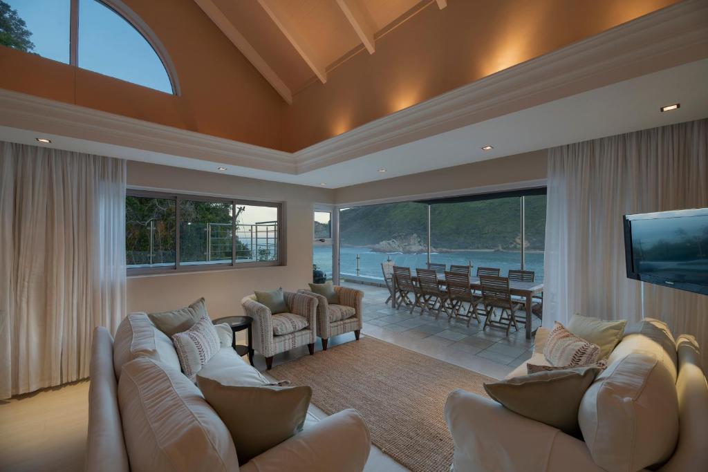 Beacon House is located on the Eastern Head of the Knysna Heads within a few metres of the Knysna Lagoon and 10 km from the centre of Knysna. It features views towards the Outeniqua mountains and out to sea. Each air-conditioned apartment has a spacious sun deck with barbecue facilities. It comes with a fully equipped kitchen, a gas fireplace and 2 bathrooms with free toiletries. Guests can make use of the self-catering equipment at Beacon House to prepare their own meals. East Head Cafe is located 50 metres from Beacon House. Attractions in the area include Featherbed Private Nature Reserve and Knysna Elephant Park. Knysna Golf Course is 2.6 km away.