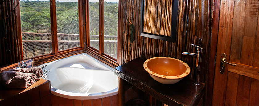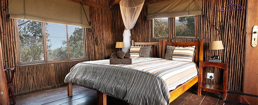 Guests spend a relaxing holiday enjoying the bush views from their tree house and relaxing under the stars after a meal in the boma. Bona Ntaba Tree House Lodge makes the perfect getaway for your small group or large family. With only 4 units, it is possible to book the entire camp for you and your friends so as to have a totally private holiday. Enjoy our large Lounge at the central building along with the sunset deck, splash pool, and wildlife watering hole.