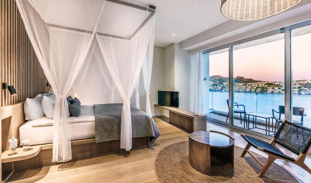 Facing the beachfront, Cape Bodrum Luxury Hotel & Beach offers 5-star accommodation in Gundogan and has a garden, terrace and restaurant. 2.5 km from Gundogan Beach and 22 km from Bodrum Marina Yacht Club, the property features a private beach area, as well as a bar. The wellness area includes an indoor pool, fitness centre and sauna, while an outdoor swimming pool is also available. The hotel will provide guests with air-conditioned rooms offering a wardrobe, a kettle, a minibar, a safety deposit box, a flat-screen TV, a balcony and a private bathroom with a shower. Guests at Cape Bodrum Luxury Hotel & Beach can enjoy a buffet breakfast. The property has an in-house hammam, hairdresser’s and business centre. Non-stop advice is available at the reception, where staff speak English and Turkish.
