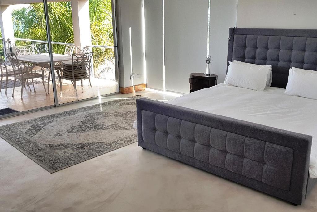 Casa Del Palmera is situated in Central Langebaan. It is a brisk walk from almost everything, including central town with all its restaurants, shops and the beach. This property is build on several levels. The flatlet consists of two en-suite bedrooms which open onto the garden and swimming pool. There are also two en-suite bedrooms on the ground level. The kitchen, lounge and entrance are all on the ground level. The main en-suite bedroom and a informal lounge is situated on the first floor, and there is also a fully equipped modern kitchen on this floor. Both the ground and first floors have amazing views of Langebaan and the Lagoon. The house is ideal for a large group or family. The house is also equipped with both indoor and outdoor built in braai areas. The large double garage is available for guests to use. Casa Del Palmera is equipped for 12 people and is rented out on a self-catering basis. The house is equipped with Premium Bouquet DStv and is furnished for comfort. Sorry no pets allowed!