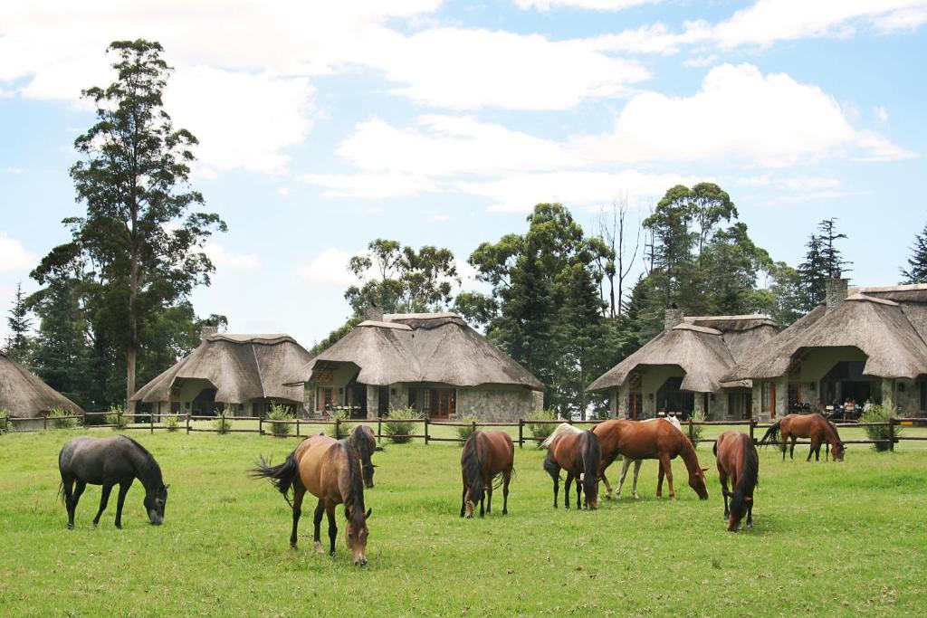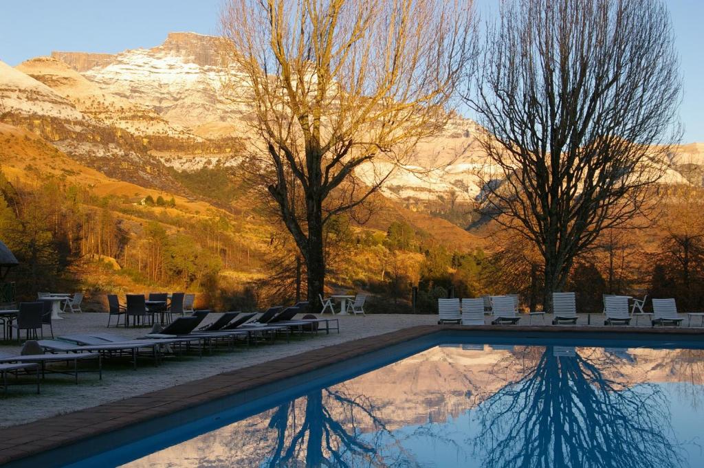 Situated within the Ukhahlamba Drakensberg World Heritage Site, this 4-star hotel is surrounded by gardens and overlooks the Drakenberg Mountains. It includes a large pool, a restaurant and an animal farm. All rooms, suites and chalets at Champagne Castle Hotel are decorated in light colours and have a private patio. They also come with a satellite TV and tea/coffee facilities. Meals are served in Champagne’s restaurant with its wooden beams and large fans for refreshment. There is also a bar with a fireplace that opens out onto a large veranda overlooking the mountains. Massages are available at the spa and there is a casual lounge with a large TV to relax afterwards. Guests can enjoy trout fishing in the garden ponds, go horse riding or accompany children in the games room.