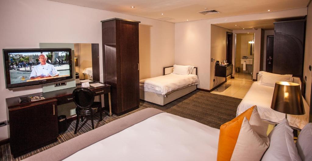 DELUXE ROOM WITH SHOWER Our Deluxe Room with shower is the perfect room for couples, solo travelers and business individuals. These rooms are suitable for your conference delegates or for your guests to stay over in when you plan your next function or wedding with us. DELUXE ROOM WITH BATH AND SHOWER Our Deluxe Room with bath and shower offers you a bath and shower in the bathroom and is the perfect room for couples, solo travelers and business individuals that wish to book a longer stay. These rooms are suitable for your conference delegates or for your guests to stay over in when you plan your next function or wedding with us, and a baby cot can be provided upon request. FAMILY ROOM WITH BATH AND SHOWER Our Family rooms are very popular and often fully booked. The room can accommodate both mom and dad and two kids. It is equipped with a King sized bed and two single beds (in the same room). This room type is often booked by brides-to-be for her bridesmaids where the bride and bridesmaids can enjoy a pajama party together on the night before her big wedding day. JUNIOR SUITE WITH BATH AND SHOWER Our Junior Suites are popular amongst discerning business travelers which offers a separate lounge, with a working desk and two televisions. A bath and shower completes the bathroom and these room types are closest to our lifts for quick and easy access.