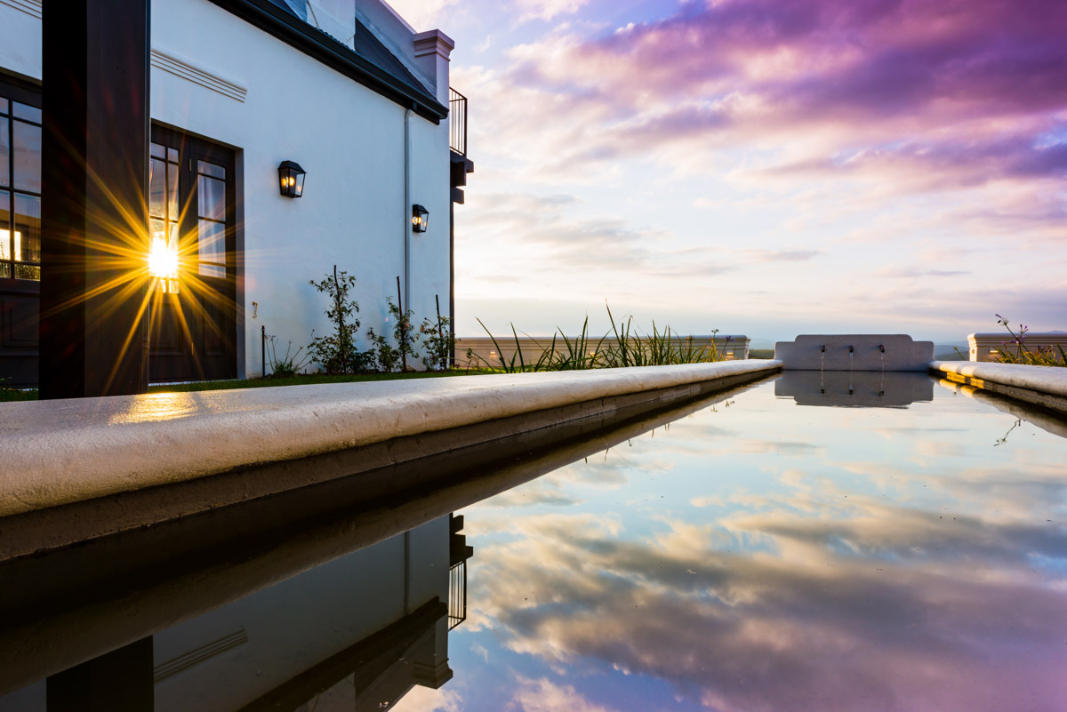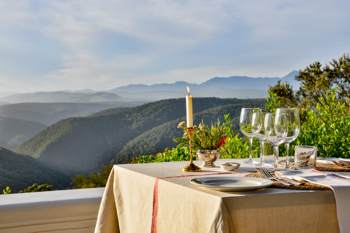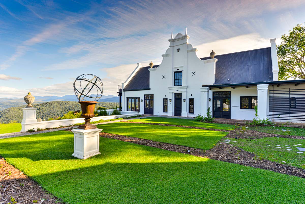 Set amongst the fynbos at the top of a valley, the views at Fairview are in a class of their own. Newly renovated to embody a luxurious, contemporary feel, the Cape Dutch style homestead makes use of spacious design and vast windows to make the most of the idyllic surrounds. Refined and sophisticated, yet warm and welcoming, the elegant interior has been carefully considered. Taking inspiration from the works of South African painter, Irma Stern, the colour palette is a unique combination of neutrals with vibrant splashes of colour. Coupled with the whitewashed walls, brushed cement flooring, and natural materials and textures, the result offers a more modern take on country living. Striking South African artworks on loan from the esteemed Everard Read Gallery adorn the walls, while the presence of original antiques and other classic pieces, some of which have been on the farm for years, add to the charm.