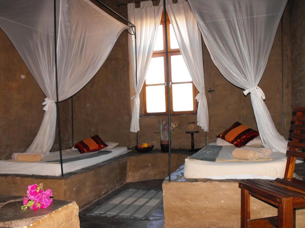 The Lodge is situated inside Fort Sesfontein which has been reestablished authentically even to details from the ruins of a historical Fort built in 1896. It is a monument providing safety and coziness but naturally fulfils the demand for modern facilities according to today’s standards. Descendants of the natives of the Damaras, Hereros and Himbas are your hosts. They create a friendly and amiable atmosphere and allow a view into their culture by performing songs of their tribes. Nature, the protection of fauna and flora, but also progress in health and education of the local residents is what we as well as our guests stand for. With your presence you contribute to the preservation and development of this region.