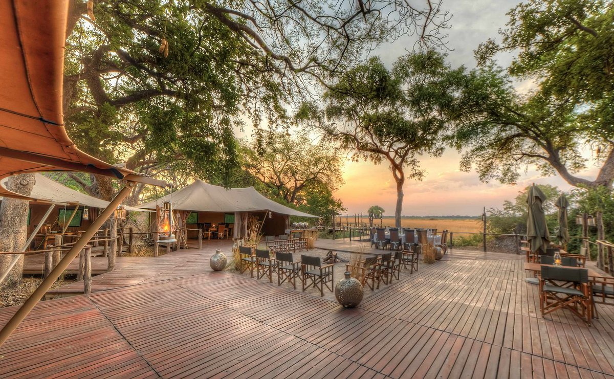The northern areas of the delta feature larger expanses of savannahs punctuated by lagoons and tributaries, and it is on the banks of one of these that a magnificent site has been selected for Kadizora Camp. Beneath a majestic stand of trees and along a peninsula, commanding uninterrupted panoramic vistas of the delta, the camp has been set out to afford each luxury tent absolute privacy.