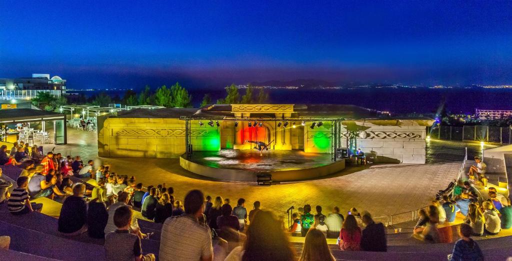 Only 500 metres from Psalidi Beach, the 4-star Kipriotis Aqualand offers 3 pools with 6 water slides. Surrounded by a garden, it has 1 restaurant and 2 bars. A gym and a tennis court are included. Kipriotis Aqualand Hotel offers ideal accommodation for families. All air-conditioned units at Kipriotis Panorama Aqualand Hotel open to a balcony with Aegean Sea, garden or pool views. They have a kitchenette with dining area, and a satellite TV. A hairdryer and free toiletries are offered. An American buffet breakfast as well as Greek and international dishes are served daily at Erato restaurant. Guests can enjoy refreshing drinks and cocktails at Sophocles bar and Amphitheatre pool bar. A mini market can be found in the property. Sport facilities include diving and canoeing. Entertainment nights are organized at the open-air amphitheatre. A 24-hour doctor is available upon request.
