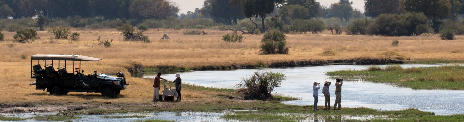 Explore the intricate watery canals by mokoro or traverse the golden grasslands in search of the Big Five by vehicle, retreating to the contemporary comfort of your suite by night.