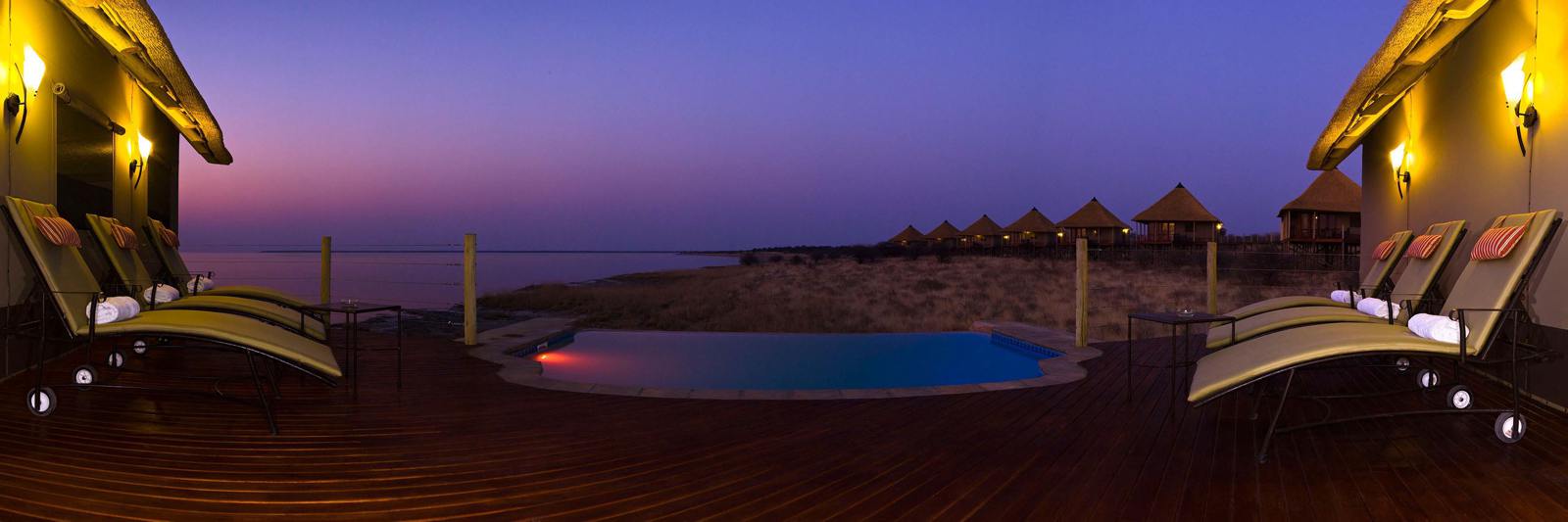 Nestled on the rim of the pan on a secluded peninsula, Onkoshi Resort is a low impact, environmentally friendly establishment with only 15 units (30 beds), which guarantees a truly personal and exclusive experience. The location is entirely out of view of current tourist routes, and all other developments in the area, and thus offers a pristine, tranquil and unique experience.