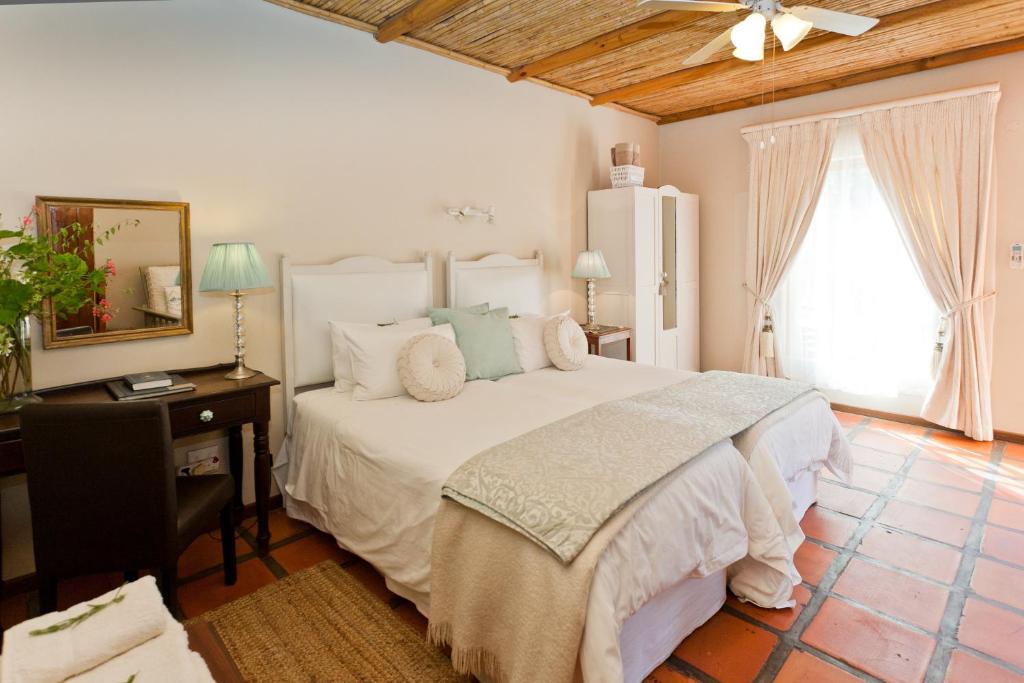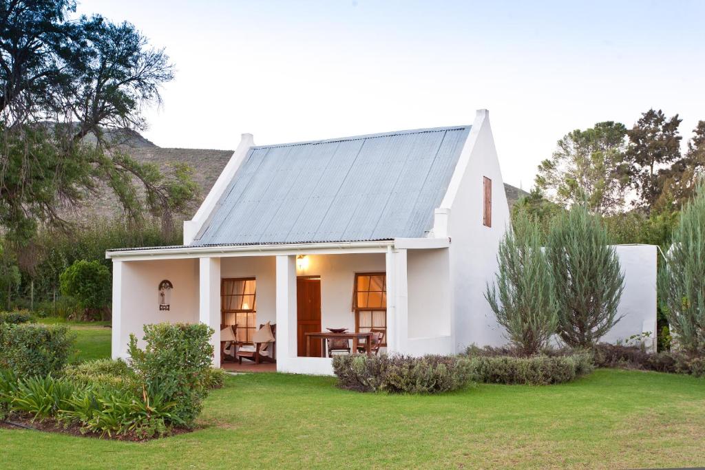 Oue Werf, circa 1857, is on a working farm in the peaceful Schoemanshoek Valley in the Western Cape, 12 km from Oudtshoorn and 15 km from the Cango Caves. Each bedroom offers TV with DSTV , bar fridge and tea tray and have private entrances to beautiful gardens, rich with birdlife. Romantic dinners and hearty breakfasts are served in the wagon house with a log fire in winter, or on the patio in summer. Relax at the gazebo and salt water pool. Absolute peace and tranquillity.