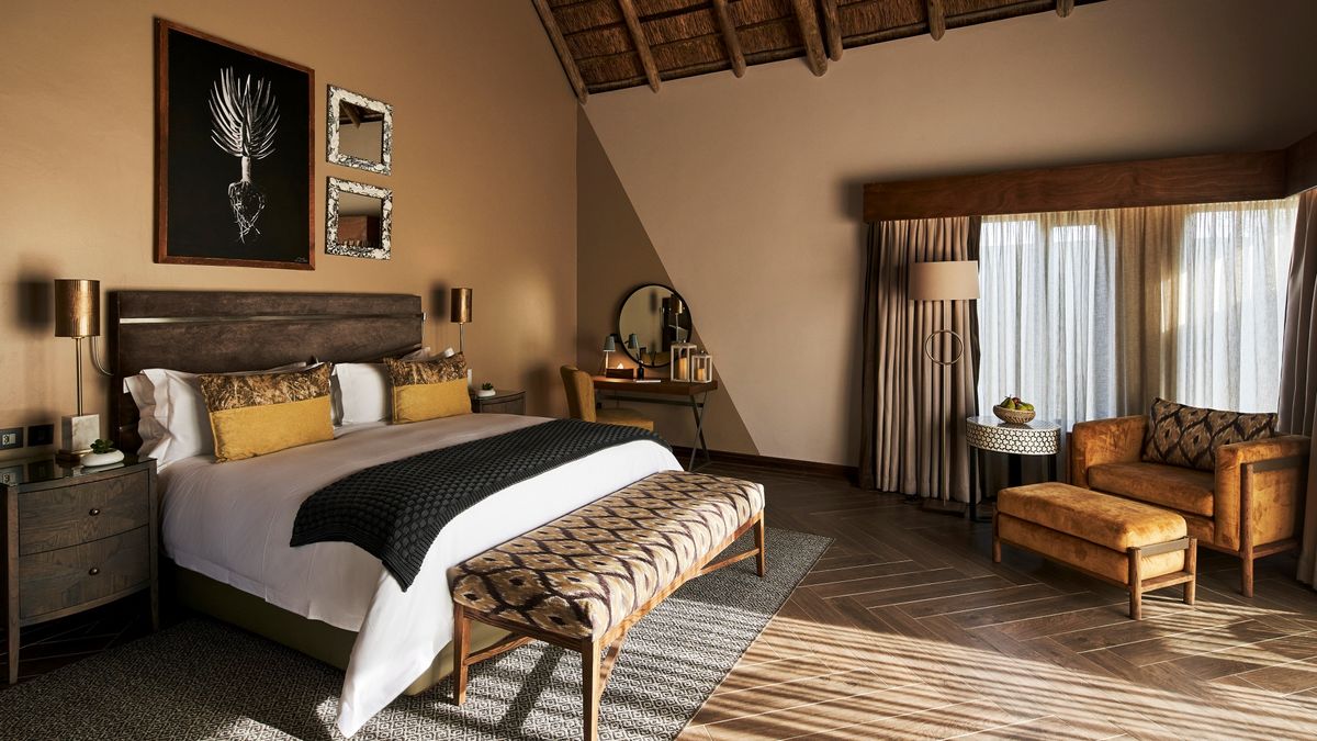 An authentic safari destination set in one of only two UNESCO-declared savannah biospheres in Africa, QWABI Private Game Reserve presents you with a unique, immersive safari experience. Here, you will be surrounded by a vibrant, ancient landscape coloured with a water-rich ecosystem, remarkable sightings and scenery, and bespoke luxury at one of two exclusive lodges, LETAMO and BABOHI. LETAMO is the largest lodge at QWABI and is ideal for family safaris, with a number of child-friendly activities and amenities available. Hints of mid-century modern interior design merge with African patterns and artifacts for a vibrant look that maintains a serene atmosphere.