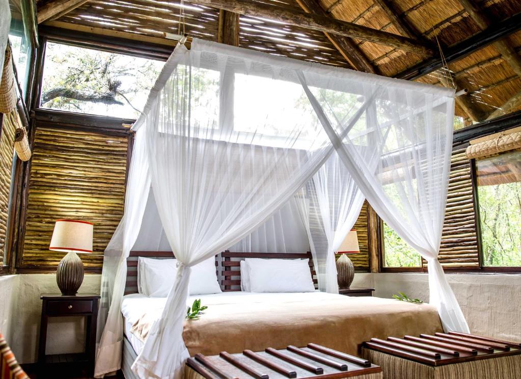 Royal Thonga Safari Lodge, is the culmination of a dream of the local community and private investors to create a natural paradise for visitors to this unique reserve. This 4 star lodge is architecturally designed to emulate the local Thonga building style, and each of the 14 chalets are uniquely positioned to offer guests total privacy and luxurious comfort within a sand forest in Tembe Elephant Park. Natural materials and timber give a warm organic ambience and invite the outdoors in. All rooms are appointed with quality furnishings and bathrooms come complete with an indoor and private outdoor shower. Hosting a diversity of habitats, Tembe Elephant Park is home to a spectacular variety of animals and birds. Birdlife around the lodge is particularly splendid, with numerous specials such as Neergaard’s Sunbird, African Broadbill, Rudd’s Apalis, Woodward’s Batis, Plain-backed Sunbird and Pink throated Twinspot being regularly sighted within the lodge’s property. With an array of local activities available, the lodge serves as a perfect base to explore the area from beach to bush. For those who prefer to relax, there is a large lap pool, day spa and comfortable lounge to unwind in.