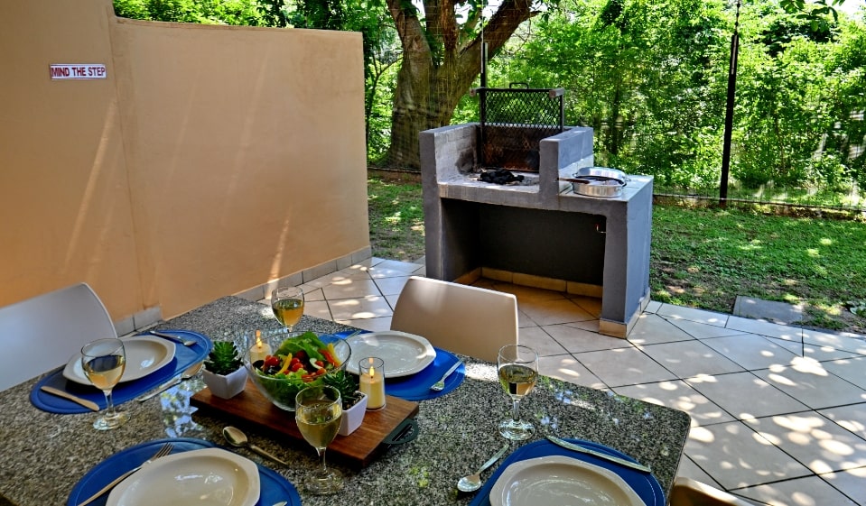 Relax in style in our spacious, air-conditioned two-bedroom apartments, designed for ultimate holiday ease and comfort. Each unit features a private braai, a fully equipped kitchen, and a cosy lounge—perfect for family getaways or a romantic retreat. Everything you need, no hassle, just enjoy! Unit amenities Air-conditioning for a cool, comfortable stay Fully-equipped kitchen with fridge, freezer, oven, and microwave DSTV (Hotel Bouquet) to keep you entertained when you’re chilling Private braai/barbecue area for delicious outdoor dining Lock-up safe for added security Linen and towels provided (bring your own swimming towels) Cleaning service (except Sundays & Public Holidays)