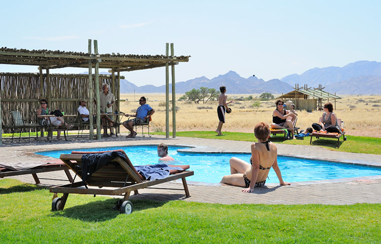Our exclusive Sossus Oasis Group Campsites are ideal for larger groups travelling together. These campsites offer exquisite views of the Desert plains and surrounding mountains and are each equipped with power outlets, running water, lights, barbeque area. A refreshing pool and separate ladies and gents bathroom facilities are available.