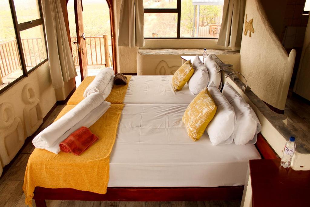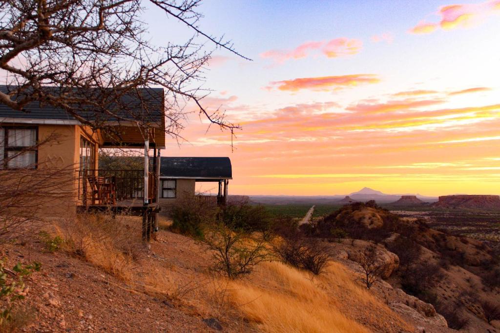 Perched dramatically on the edge of ancient terraces, Ugab Terrace Lodge offers front-row seats to some of Namibia’s most spectacular sunrises and sunsets. Each chalet is perfectly positioned to soak in panoramic valley views, making it a destination as much as a place to stay. After a day of exploring nearby attractions, guests are welcomed with generous portions of hearty Namibian cuisine and warm hospitality. Evenings are peaceful and restorative, with simple yet comfortable rooms designed for a good night’s rest.